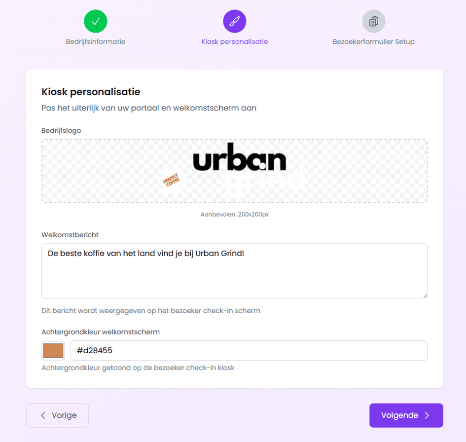 In de tweede stap kan je meteen je kiosk personaliseren. Je stelt hier onder andere in: